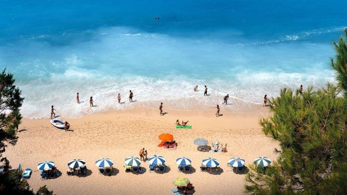 En la isla de Lefkada, sugerimos visitar las playas más increibles del Mar Jónico, por un lado Porto Katsiki, es la playa más popular de la isla a los pies de un acantilado, contrastando el verde de la montaña, el acantilado y el agua turquesa del mar. Y por el otro no nos podemos perder la playa Egremni, donde se puede ver el agua del mar de un impactante color azul mezclado con turquesa. A esta playa solo se puede acceder en barco, es inaccesible por tierra.